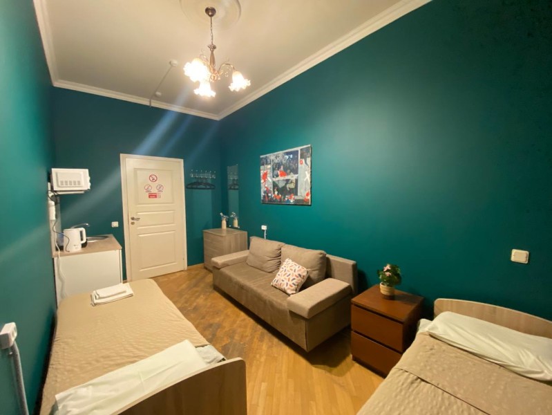 | Эконом 2-местный twin с диваном | 18 кв.м. | 4 чел. | Мебель (вешалка, диван раскладной, зеркало, кровати односпальные, прикроватная тумбочка), Санузел и... |